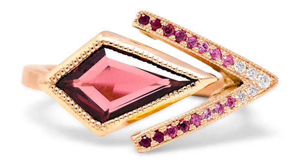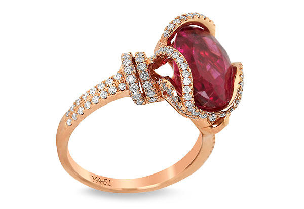 18k rose gold ring with 4.82 ct. rubellite and 0.67 ct. t.w. diamonds; $9,299; Yael Designs;