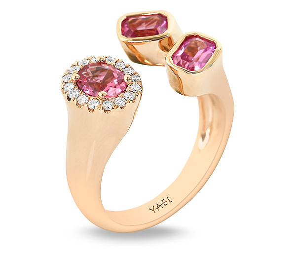 Toi & Moi ring with 1.55 cts. t.w. pink sapphires and 0.12 ct. t.w. diamonds in 18k rose gold; $6,604; Yael Designs