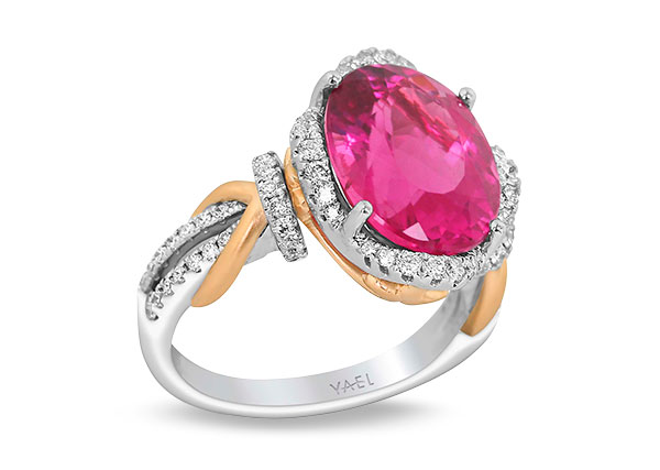 18k white and rose gold ring with 6.5 ct. rubellite and 0.59 ct. t.w. diamonds; $11,967; Yael Designs