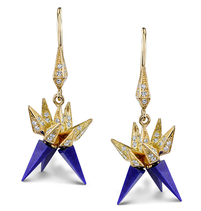 Lapis Hedgehog earrings in 18k yellow gold with diamonds and lapis; $5,000; Karma El Khalil; diana@karmaelkhalil.com; karmaelkhalil.com