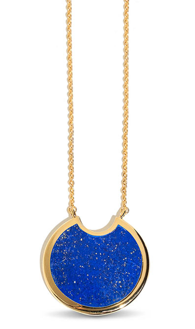 Small Mojave necklace in yellow gold–plated brass with lapis; $250; Pamela Love; lauren@megamegaprojects.com; pamelalove.com