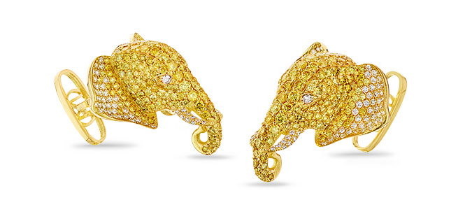 Golden Elephant cufflinks with yellow and white diamonds in 18k gold; $36,000; Oh My Got; 212-878-6080; ohmygotcufflinks.com