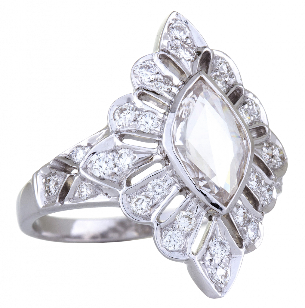 Heritage ring in 18k white gold with 1.33 cts. t.w. diamonds; $6,850; Sethi Couture; 415-863-1475; sethicouture.com