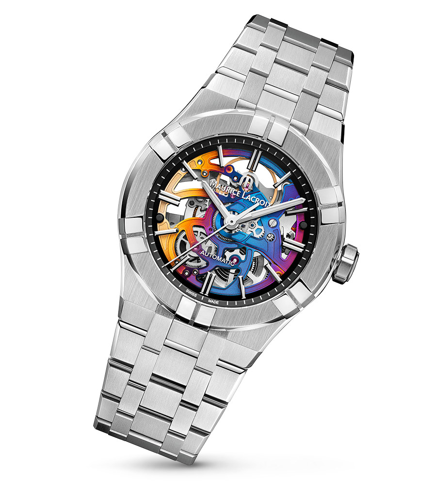 Aikon Skeleton Rainbow in 39 mm stainless steel case, sold for $7,000 at Time for Art charity auction; Maurice Lacroix