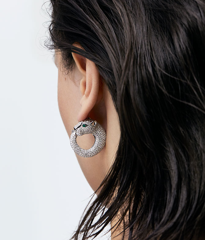 14k white gold earring with 5.05 cts. t.w. diamonds and 0.06 ct. t.w. emeralds; $17,663 (sold as pair); Effy; 212-730-8889; effyjewelry.com