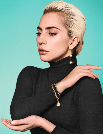 Top: Tiffany & Co. Hardwear chain wrap necklace in 18k yellow gold, $11,500; inset: from Lady Gaga’s Tiffany campaign