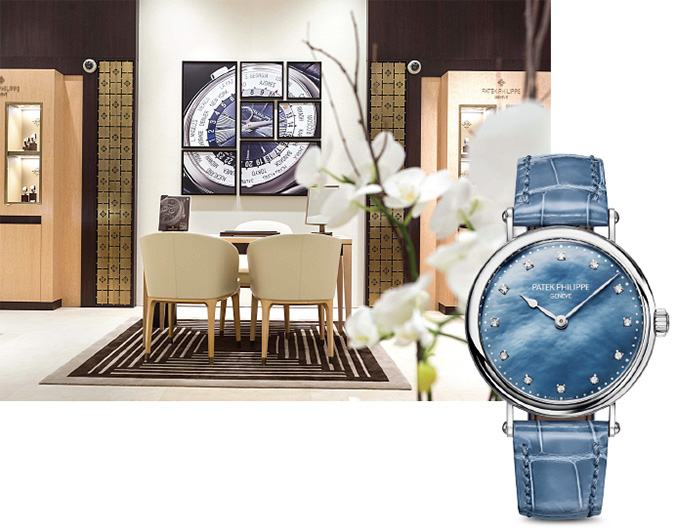 Ref. 7200/50G-011 Calatrava in 34.6 mm 18k white gold case with blue mother-of-pearl dial and diamond indexes; $29,845; Patek Philippe; 212-218-1240; patek.com