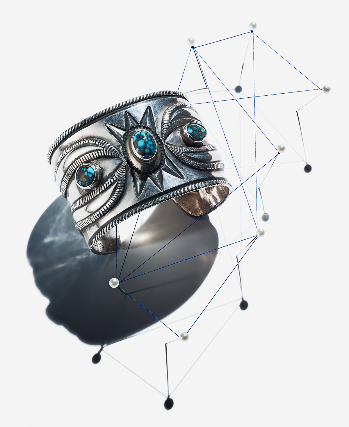Sterling silver and turquoise cuff by McKee Platero; price on request; Mahnaz Collection; 212-717-1169; mahnazcollection.com