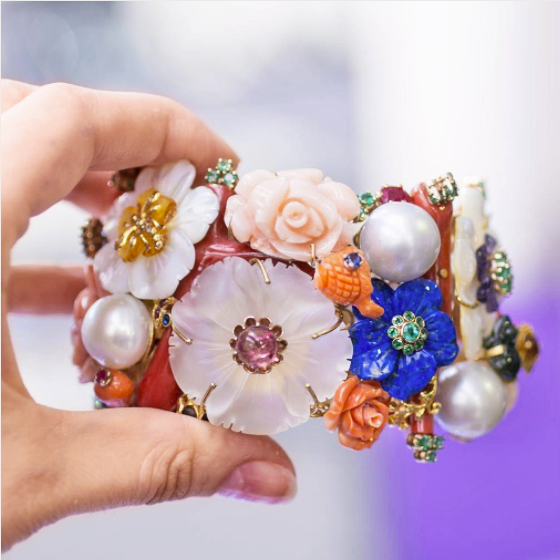 Swooning over this floral Luigi Ferrara bracelet with carved rock crystal, coral, lapis, and more.