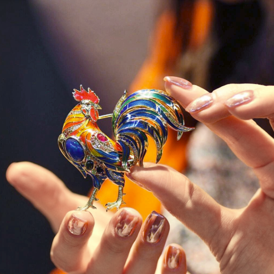 Celebrating the Year of the Rooster with a brooch by Russian brand Master Exclusive Jewellery.