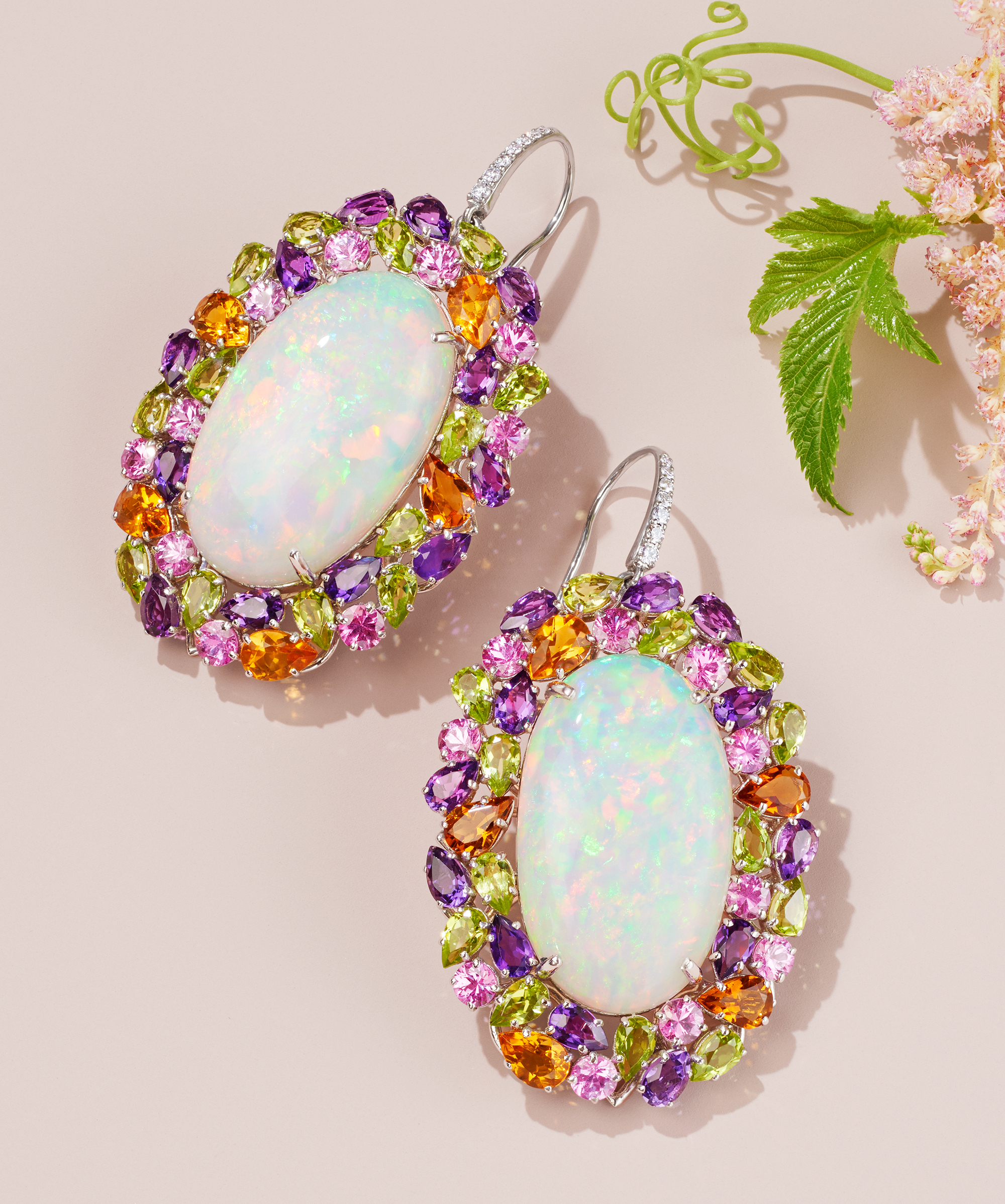 Earrings in 18k white gold with 38 cts. t.w. opals and 14.46 cts. t.w. multicolor gemstones; $22,000; VTse; 626-577-9288; vtsejewelry.com